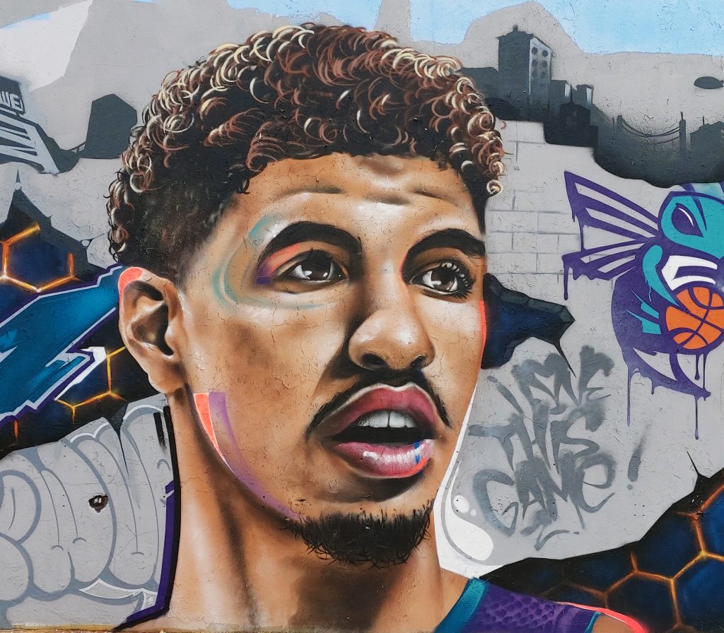 PERSONAL PROJECT Portrait of Lamelo Ball Graffiti letters by Sink. DateJuly, 2021 LocationCalicanto, Valencia. Spain Dimensions2,80×2,50 m